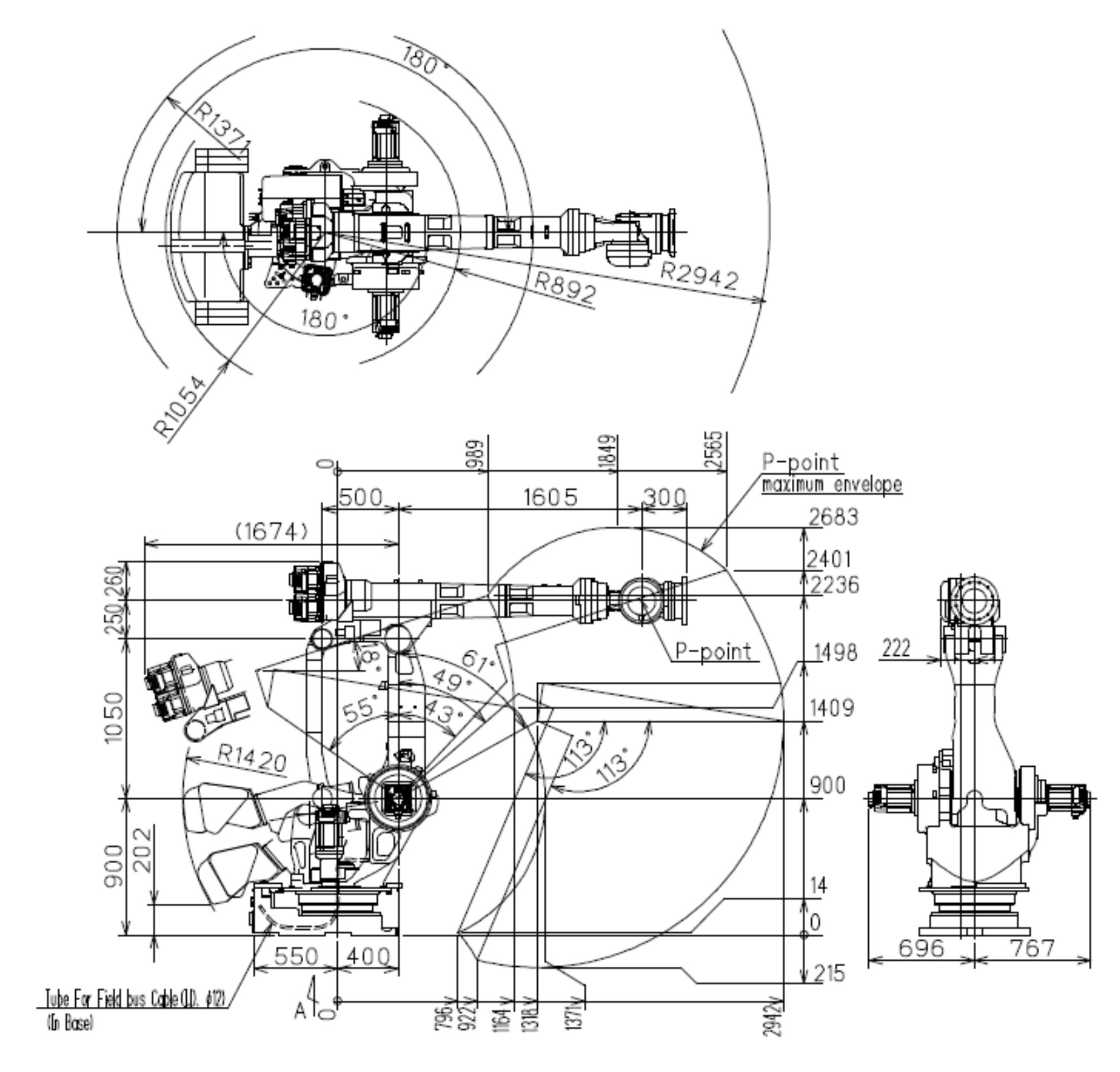 超大型負載,可對應大型工件;全軸低功率輸出,無需設置安全柵欄,設備構成簡易。